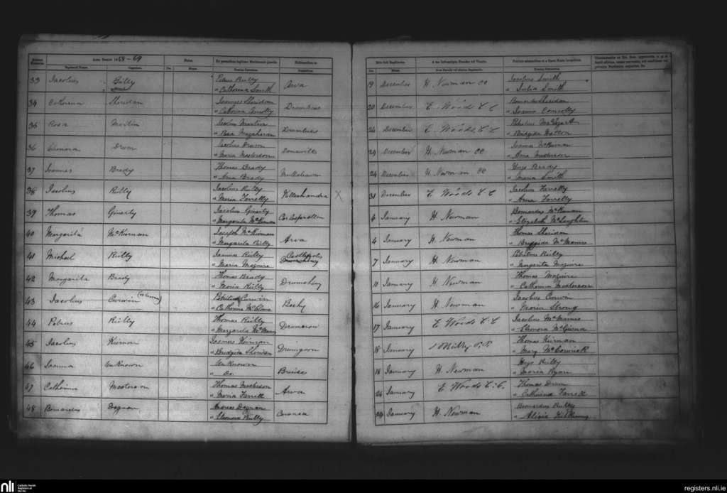 Killeshandra; County of Cavan; Diocese of Kilmore. Baptisms, Dec. 1868 to Jan. 1869