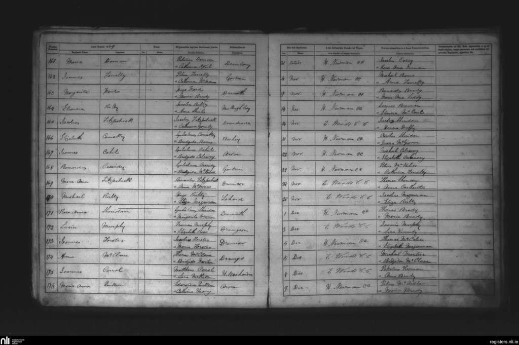 Killeshandra; County of Cavan; Diocese of Kilmore. Baptisms, Oct. 1869 to Dec. 1869