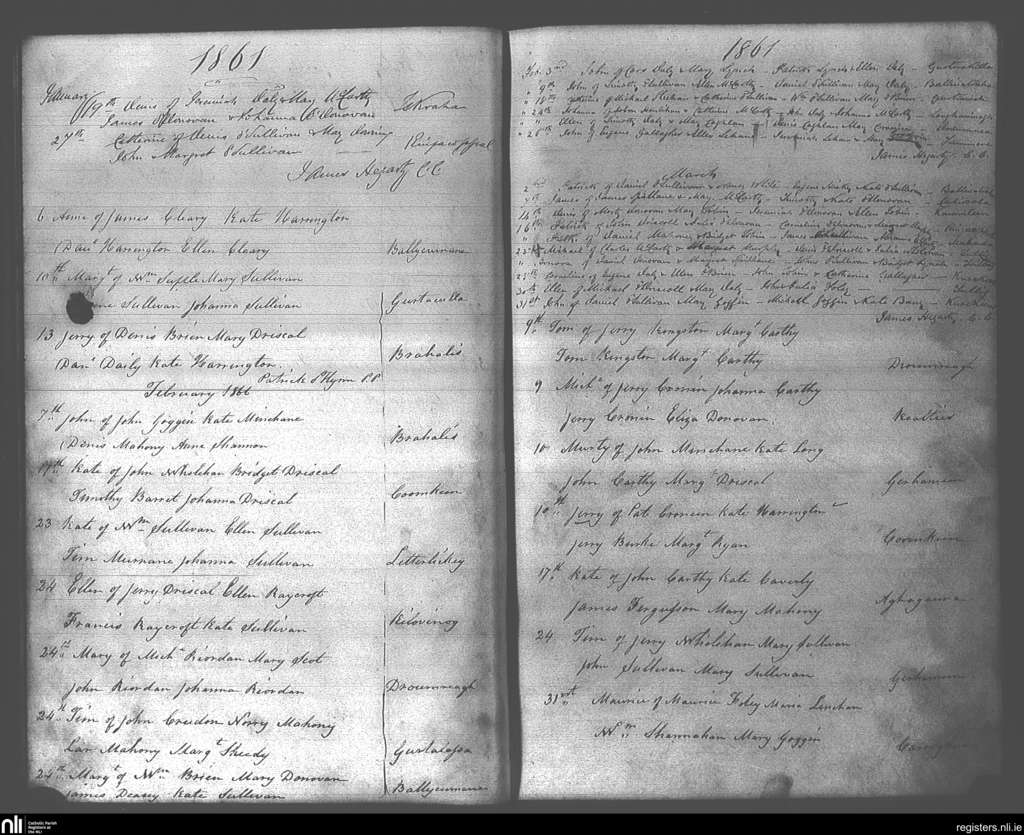 Muintervarra; County of Cork; Diocese of Cork and Ross. Baptisms, Jan. 1861 to Mar. 1861