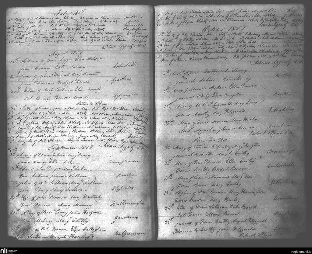 Muintervarra; County of Cork; Diocese of Cork and Ross. Baptisms, July 1861 to Nov. 1861
