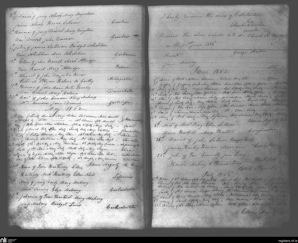Muintervarra; County of Cork; Diocese of Cork and Ross. Baptisms, Apr. 1862 to July 1862