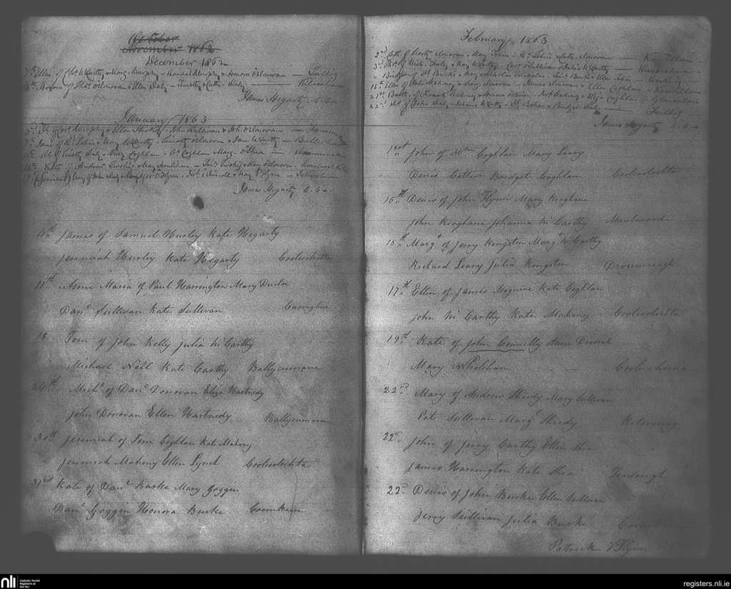 Muintervarra; County of Cork; Diocese of Cork and Ross. Baptisms, Dec. 1862 to Feb. 1863