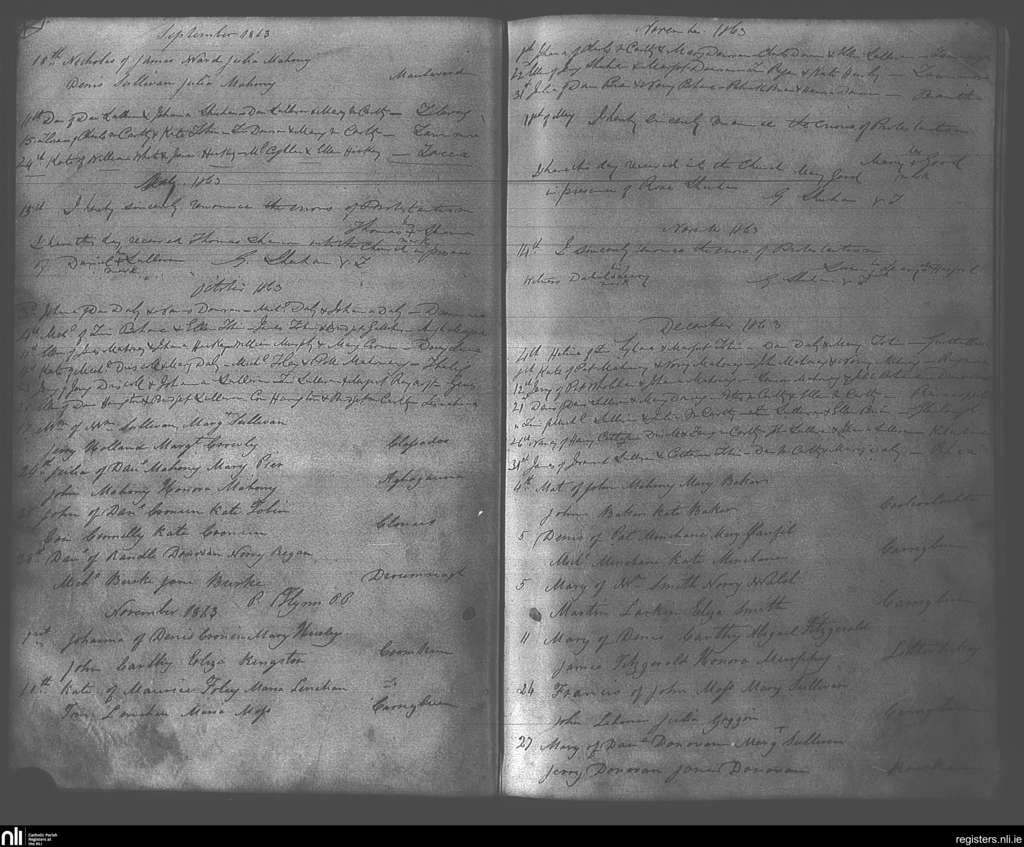 Muintervarra; County of Cork; Diocese of Cork and Ross. Baptisms, July 1863 to Dec. 1863