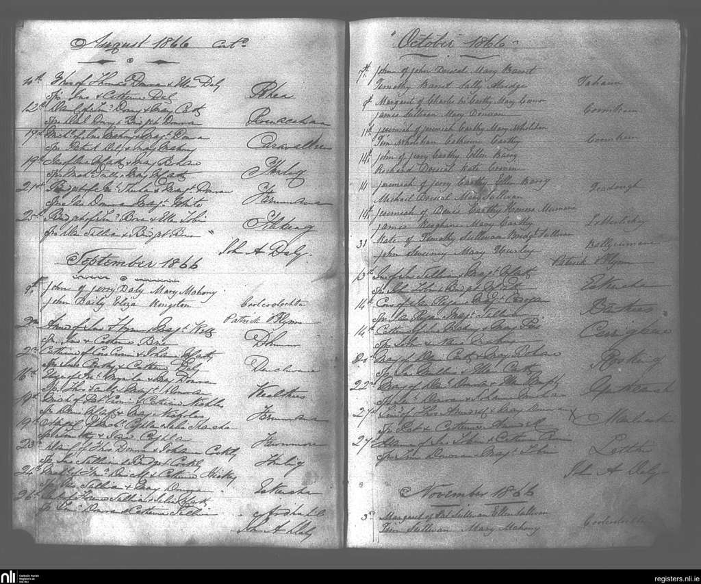 Muintervarra; County of Cork; Diocese of Cork and Ross. Baptisms, Aug. 1866 to Nov. 1866
