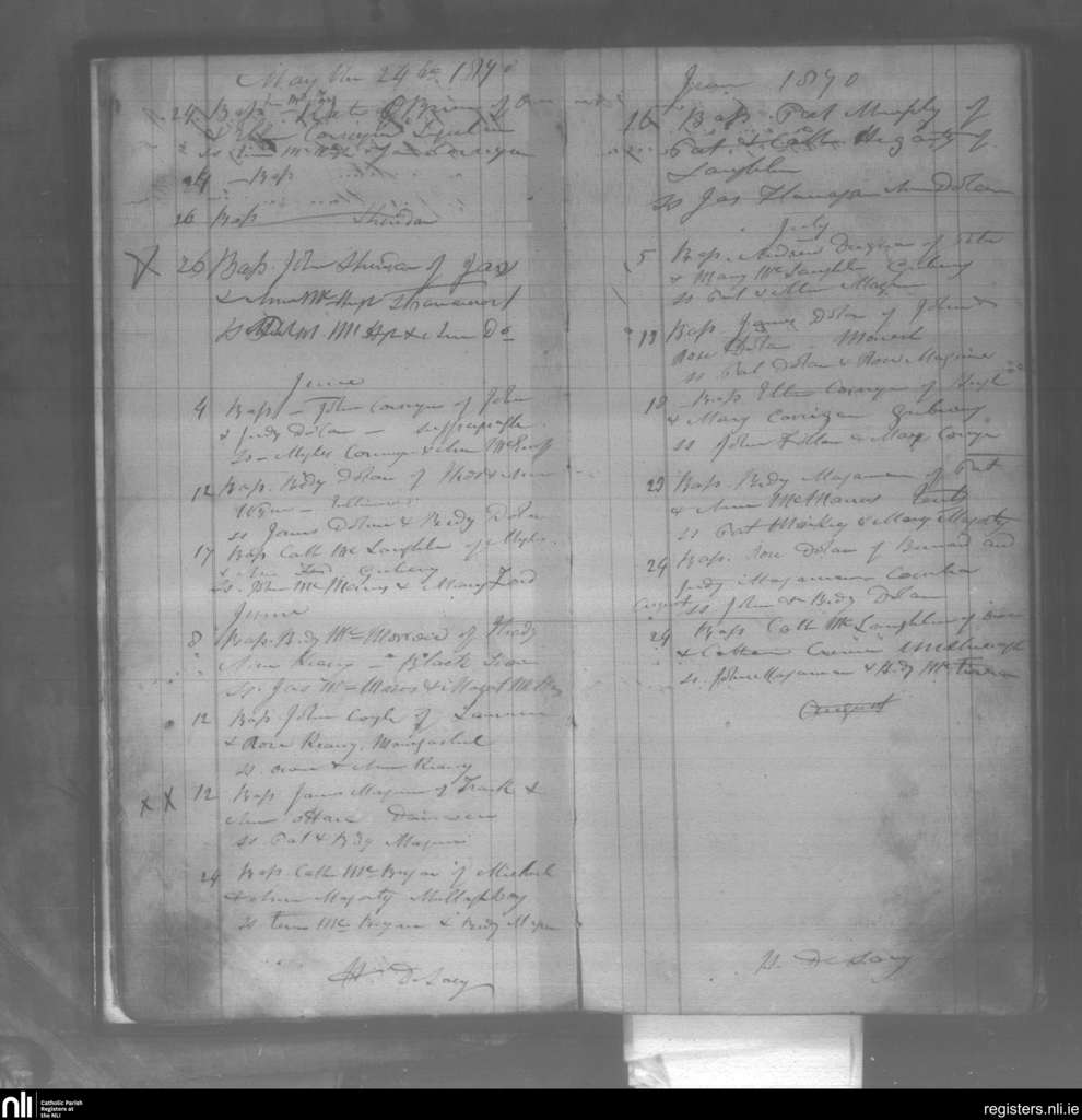 Killinagh; County of Cavan; Diocese of Kilmore. Baptisms, May 1870 to July 1870