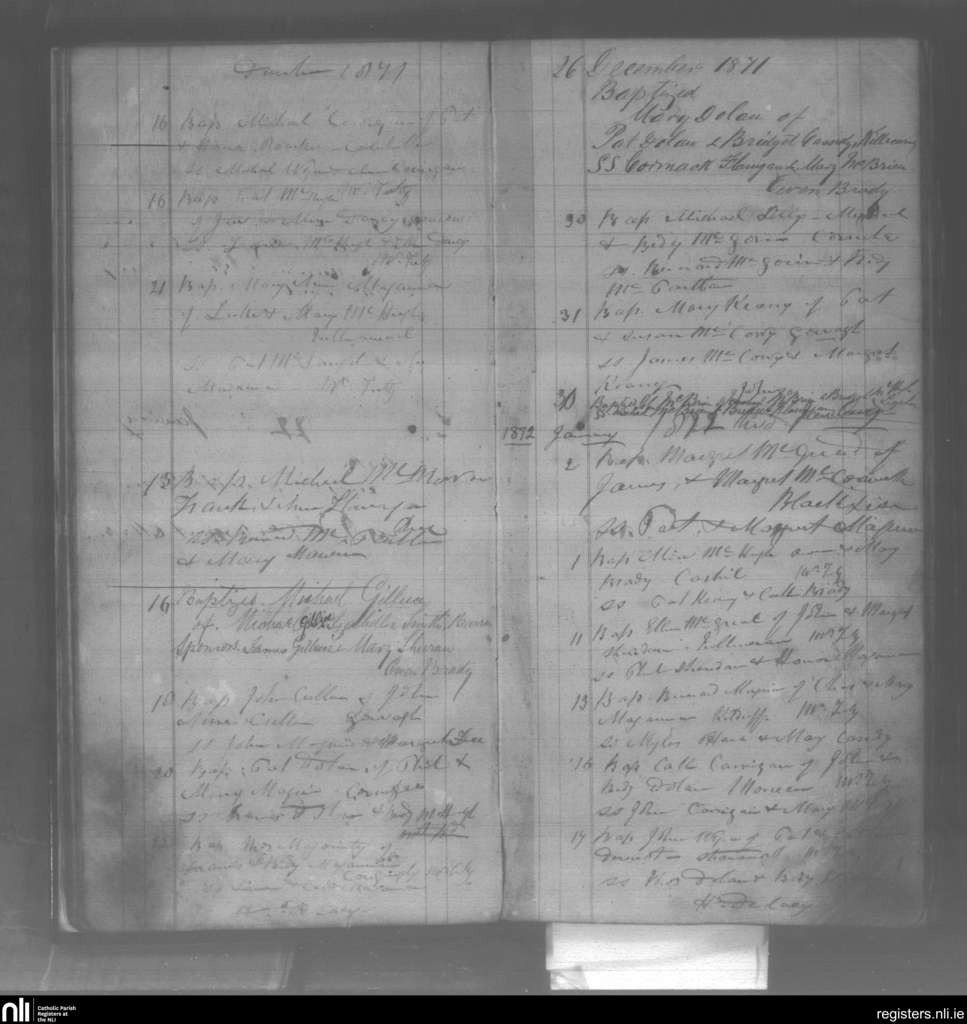 Killinagh; County of Cavan; Diocese of Kilmore. Baptisms, Dec. 1871 to Jan. 1872