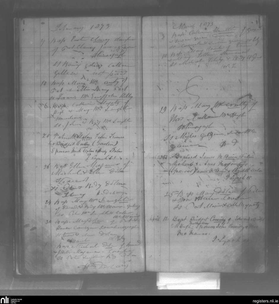 Killinagh; County of Cavan; Diocese of Kilmore. Baptisms, Feb. 1873 to Apr. 1873