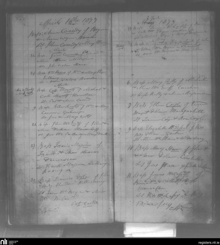 Killinagh; County of Cavan; Diocese of Kilmore. Baptisms, Apr. 1873 to May 1873