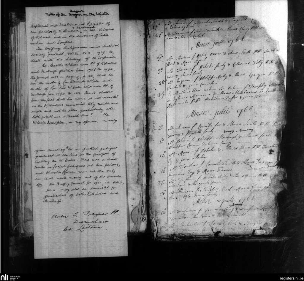 Killinkere and Mullagh; County of Cavan; Diocese of Kilmore. Baptisms, May 1766 to Aug. 1766