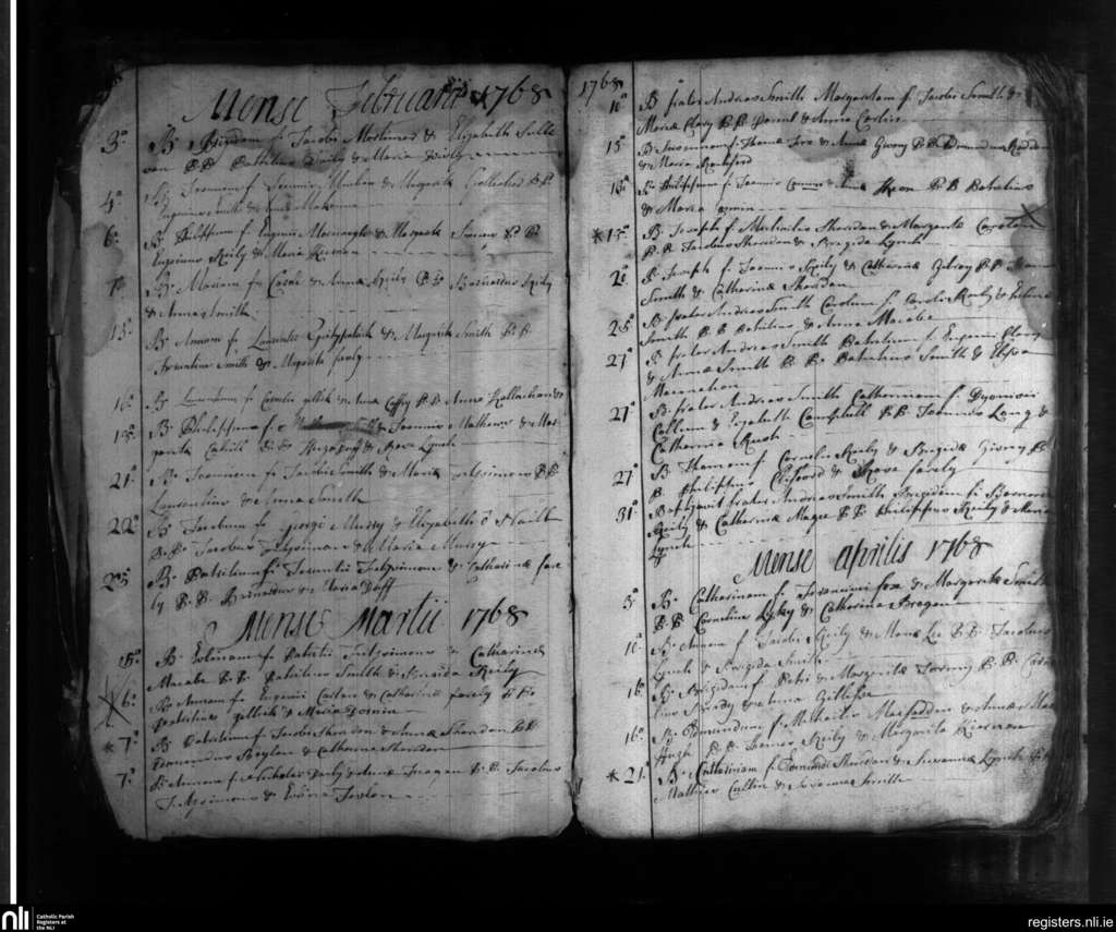 Killinkere and Mullagh; County of Cavan; Diocese of Kilmore. Baptisms, Feb. 1768 to Apr. 1768