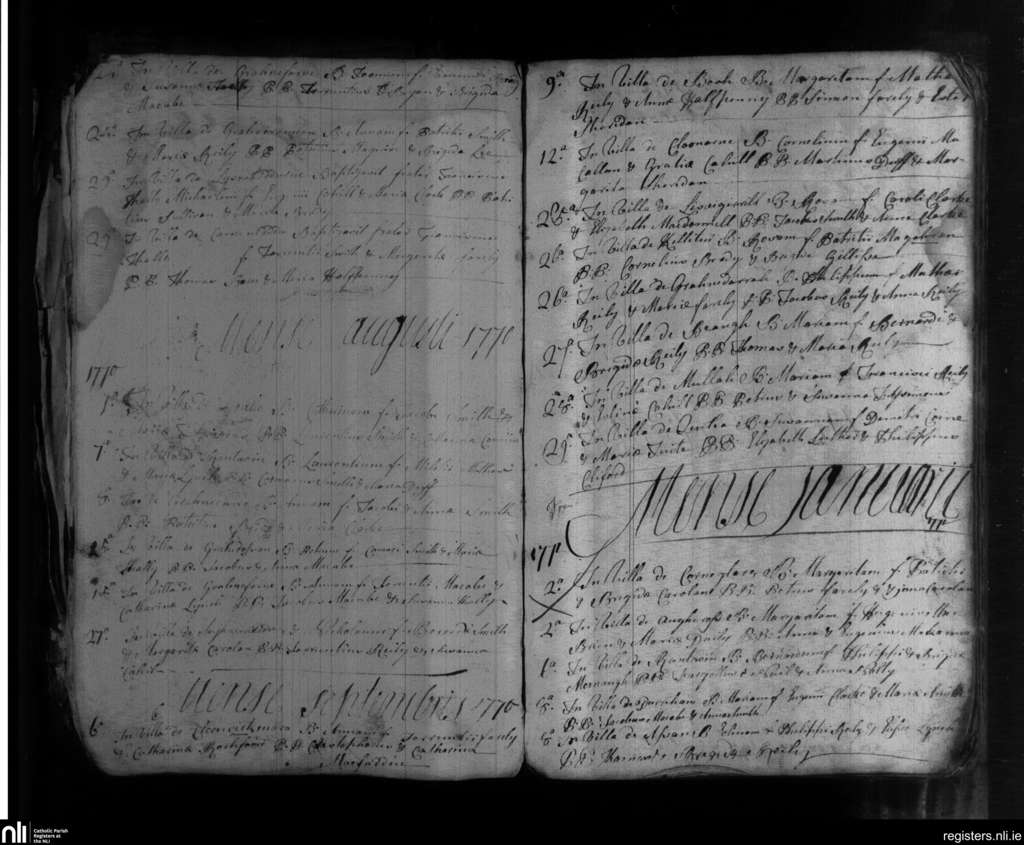 Killinkere and Mullagh; County of Cavan; Diocese of Kilmore. Baptisms, July 1770 to Jan. 1771