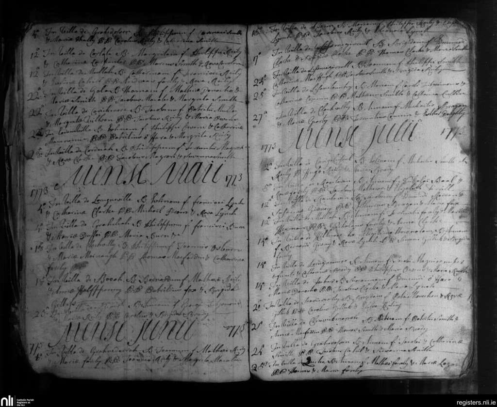 Killinkere and Mullagh; County of Cavan; Diocese of Kilmore. Baptisms, Apr. 1773 to July 1773