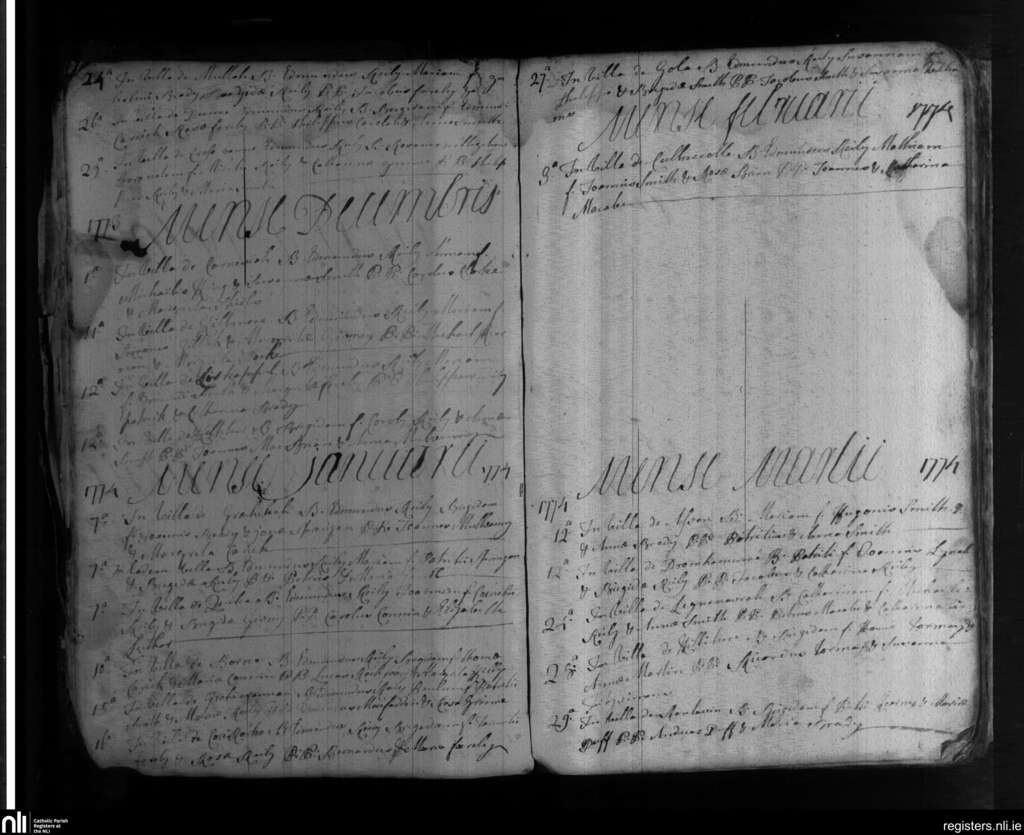 Killinkere and Mullagh; County of Cavan; Diocese of Kilmore. Baptisms, Nov. 1773 to Mar. 1774
