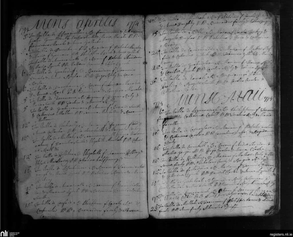 Killinkere and Mullagh; County of Cavan; Diocese of Kilmore. Baptisms, Apr. 1774 to May 1774