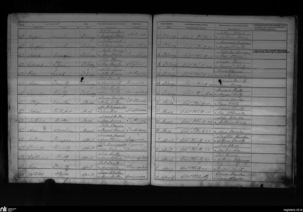 Killinkere and Mullagh; County of Cavan; Diocese of Kilmore. Baptisms, Feb. 1865 to Apr. 1865
