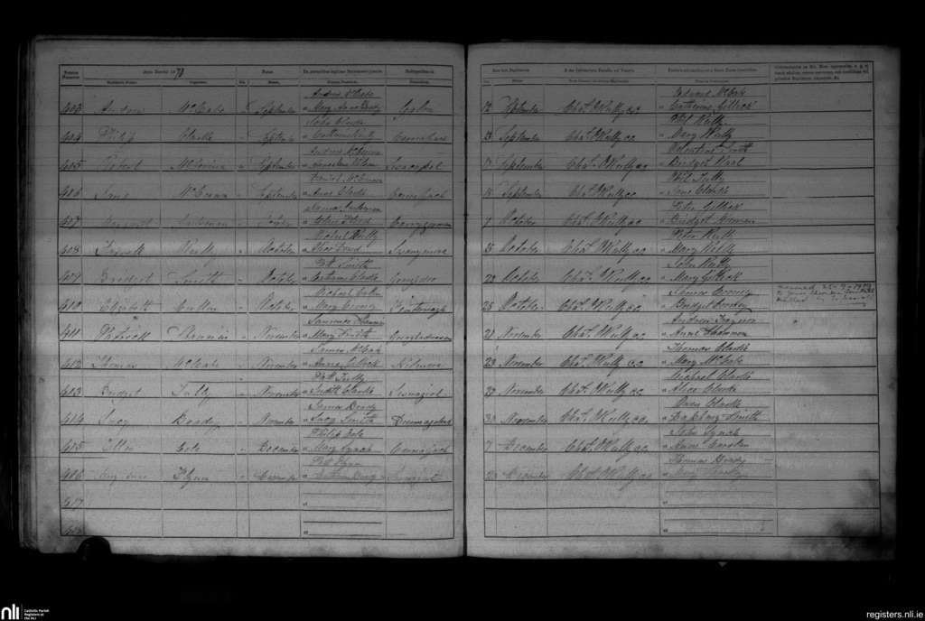 Killinkere and Mullagh; County of Cavan; Diocese of Kilmore. Baptisms, Sep. 1870 to Dec. 1870
