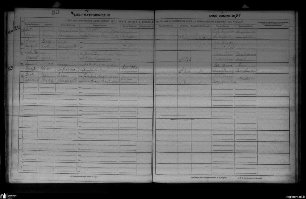 Killinkere and Mullagh; County of Cavan; Diocese of Kilmore. Marriages, July 1873 to Nov. 1873