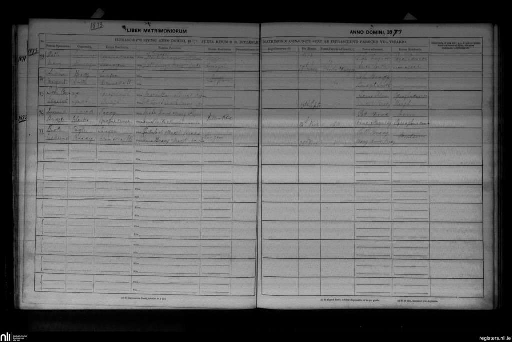 Killinkere and Mullagh; County of Cavan; Diocese of Kilmore. Marriages, July 1873 to Nov. 1873