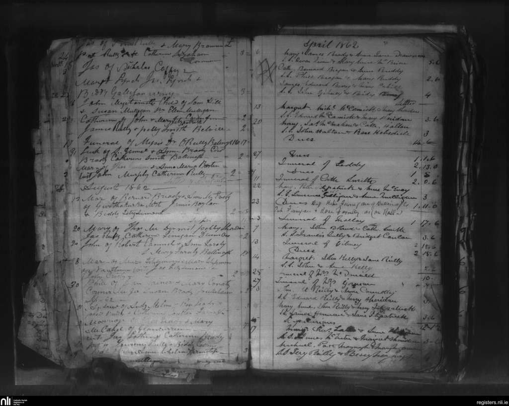 Kilmore; County of Cavan; Diocese of Kilmore. Funerals, Baptisms, Marriages, Apr. 1862 to Sep. 1862