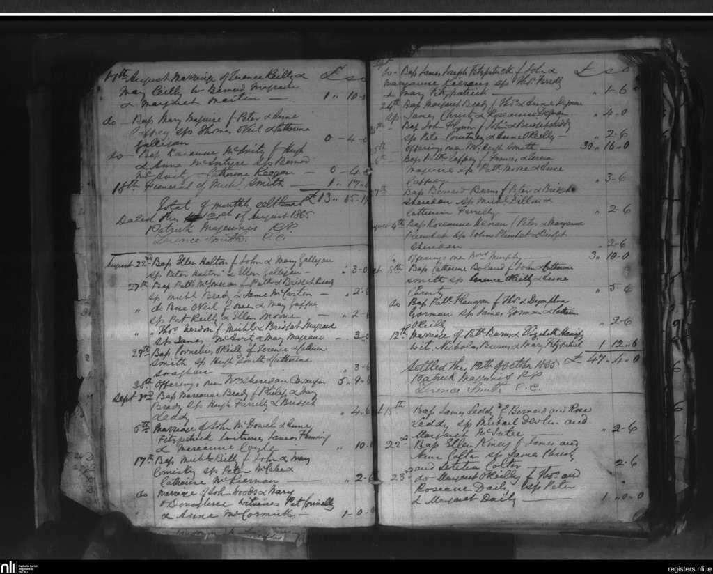Kilmore; County of Cavan; Diocese of Kilmore. Funerals, Baptisms, Marriages, July 1865 to Oct. 1865
