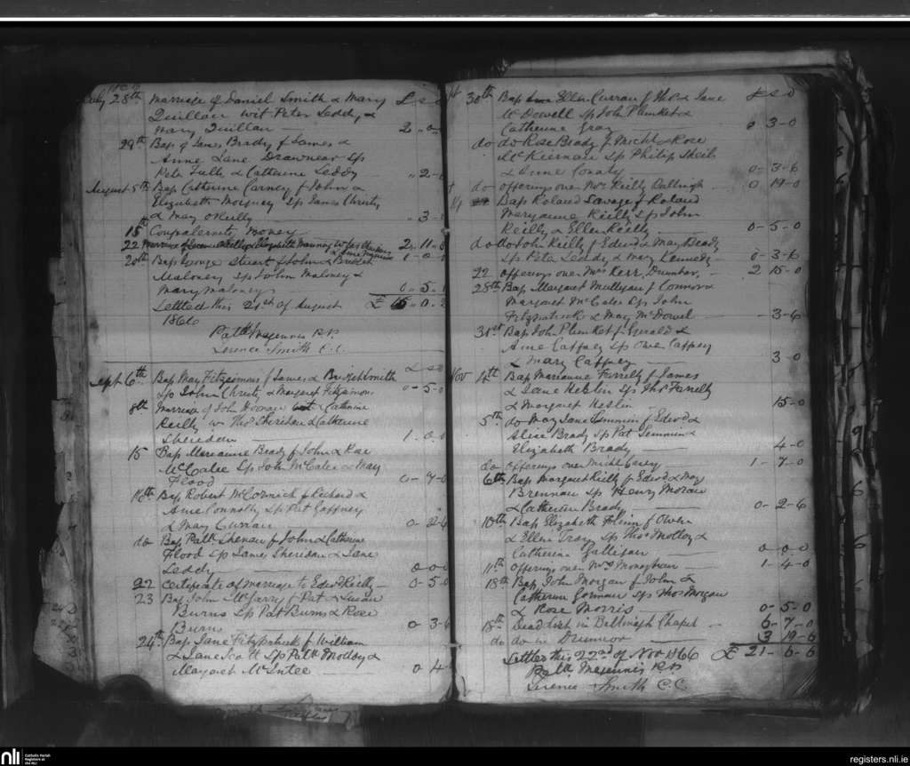 Kilmore; County of Cavan; Diocese of Kilmore. Funerals, Baptisms, Marriages, July 1866 to Nov. 1866