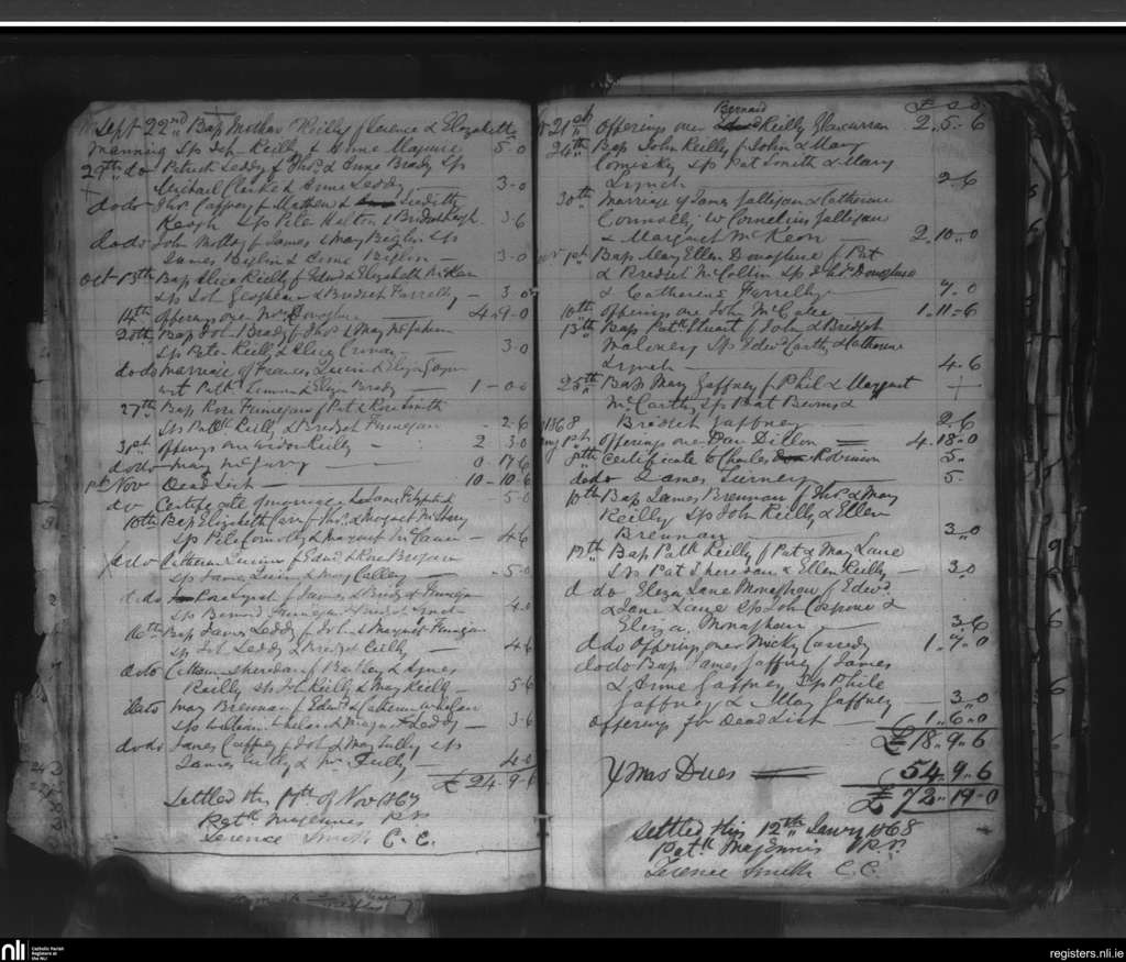Kilmore; County of Cavan; Diocese of Kilmore. Funerals, Baptisms, Marriages, Sep. 1867 to Jan. 1868