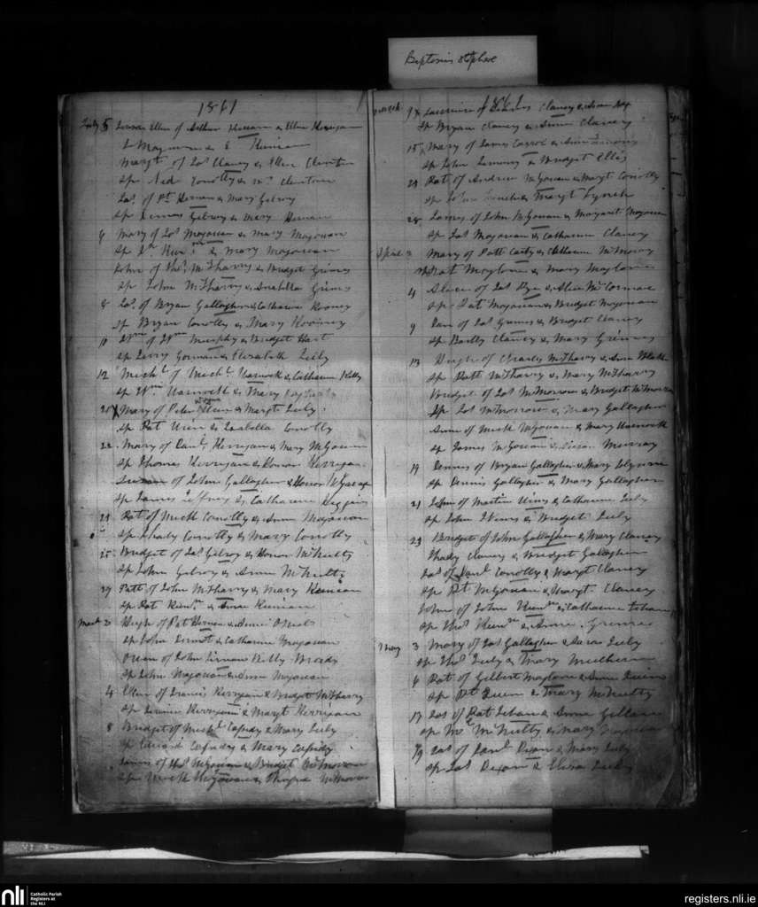 Kinlough; County of Sligo, Leitrim; Diocese of Kilmore. Baptisms, Mar. 1861 to July 1861