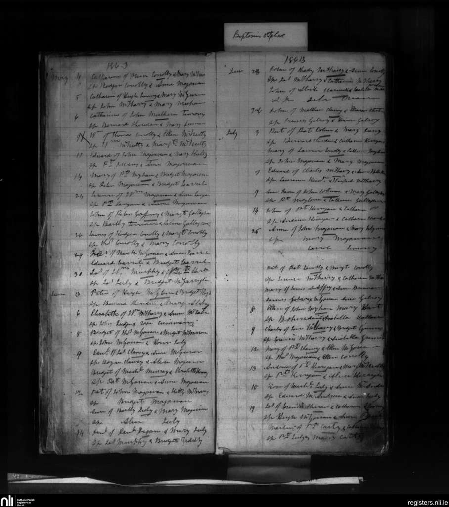 Kinlough; County of Sligo, Leitrim; Diocese of Kilmore. Baptisms, May 1863 to July 1863