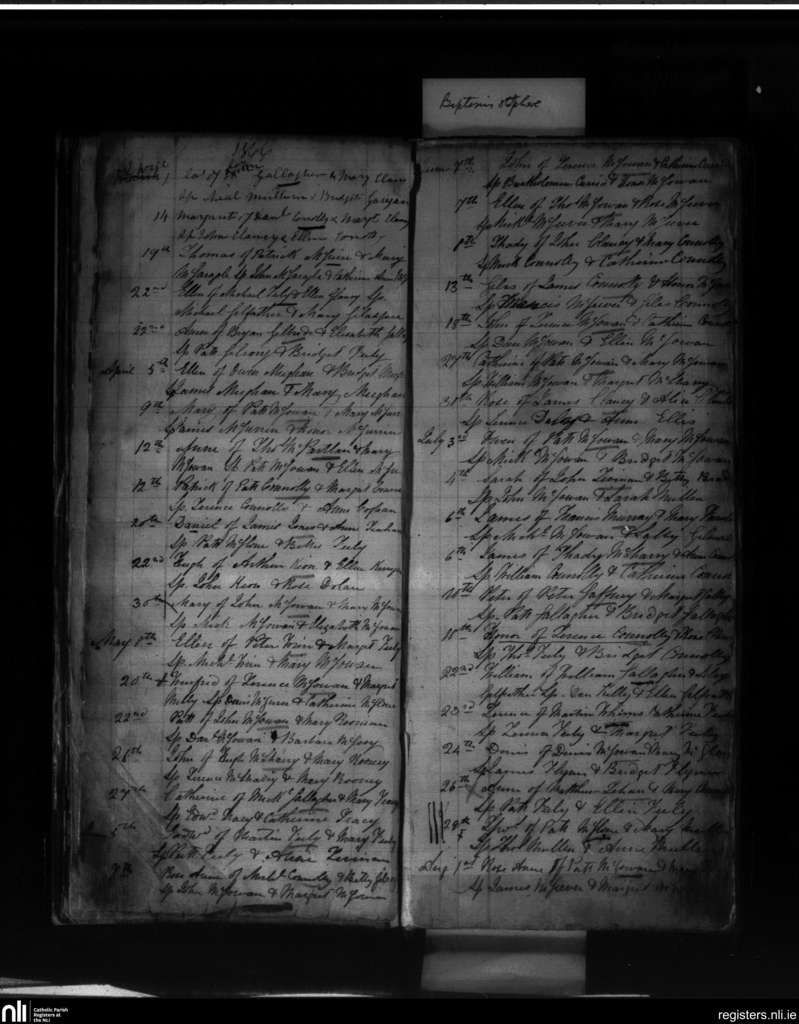Kinlough; County of Sligo, Leitrim; Diocese of Kilmore. Baptisms, Apr. 1866 to Aug. 1866