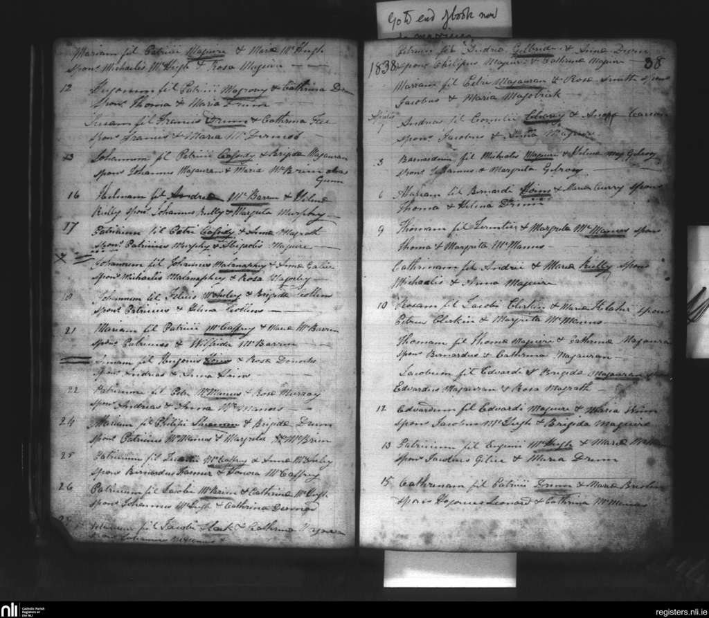 Kinnally; County of Fermanagh, Cavan; Diocese of Kilmore. Baptisms, Mar. 1838 to Apr. 1838