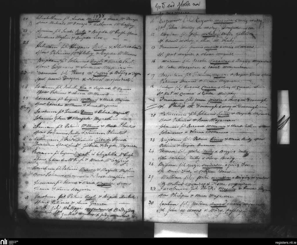 Kinnally; County of Fermanagh, Cavan; Diocese of Kilmore. Baptisms, Apr. 1838 to May 1838
