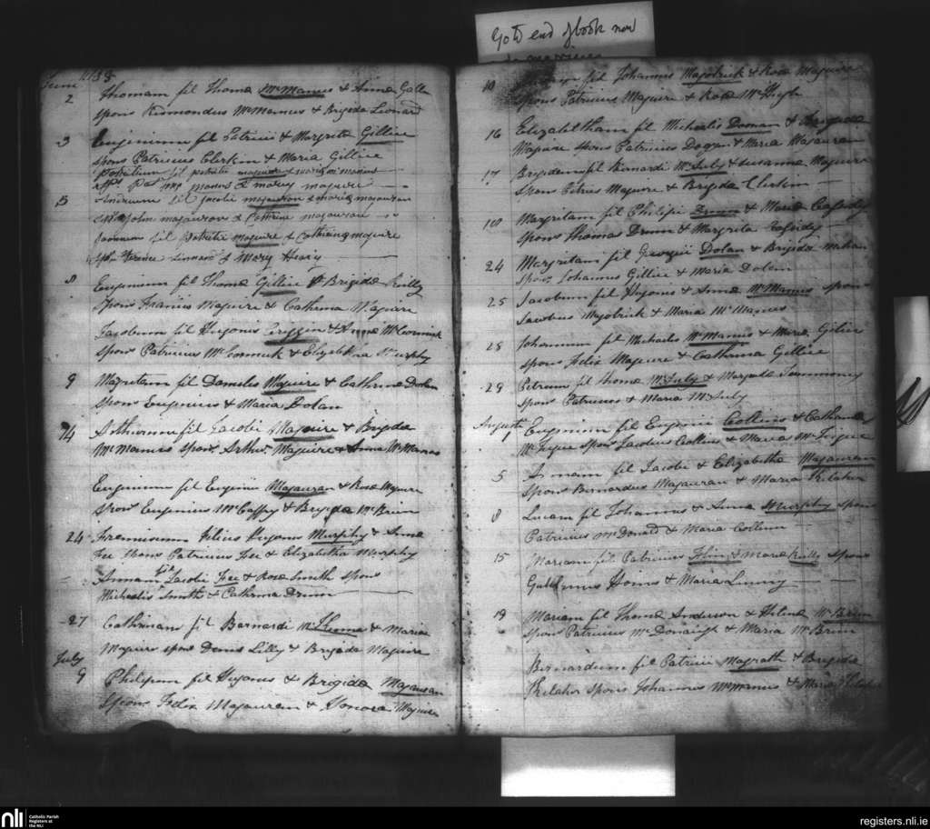 Kinnally; County of Fermanagh, Cavan; Diocese of Kilmore. Baptisms, June 1838 to Aug. 1838