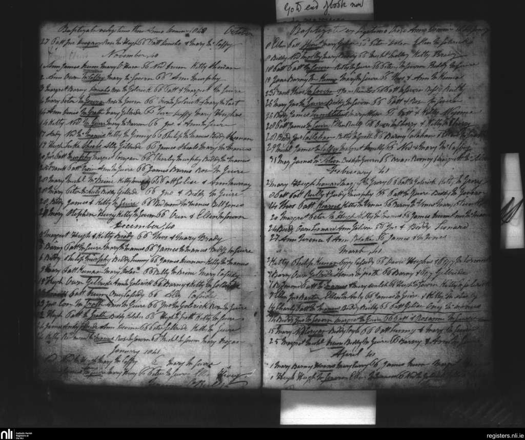 Kinnally; County of Fermanagh, Cavan; Diocese of Kilmore. Baptisms, Oct. 1840 to Apr. 1841