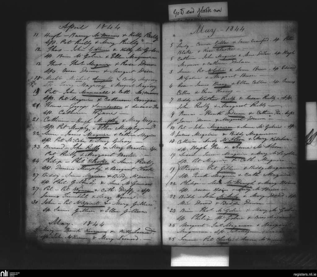 Kinnally; County of Fermanagh, Cavan; Diocese of Kilmore. Baptisms, Apr. 1844 to May 1844