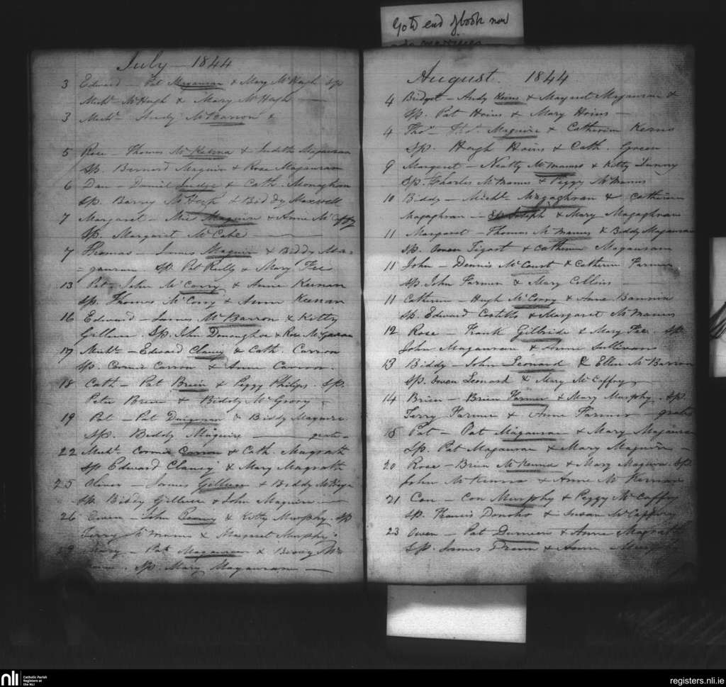 Kinnally; County of Fermanagh, Cavan; Diocese of Kilmore. Baptisms, July 1844 to Aug. 1844