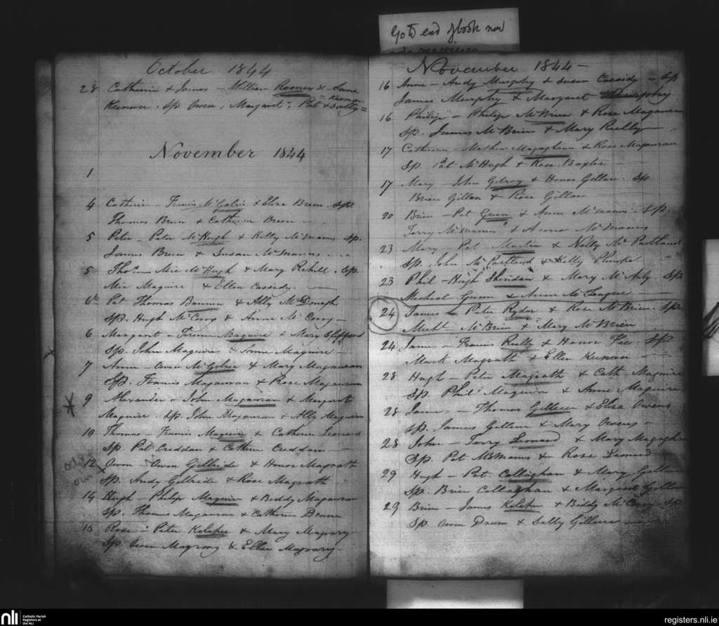 Kinnally; County of Fermanagh, Cavan; Diocese of Kilmore. Baptisms, Oct. 1844 to Nov. 1844