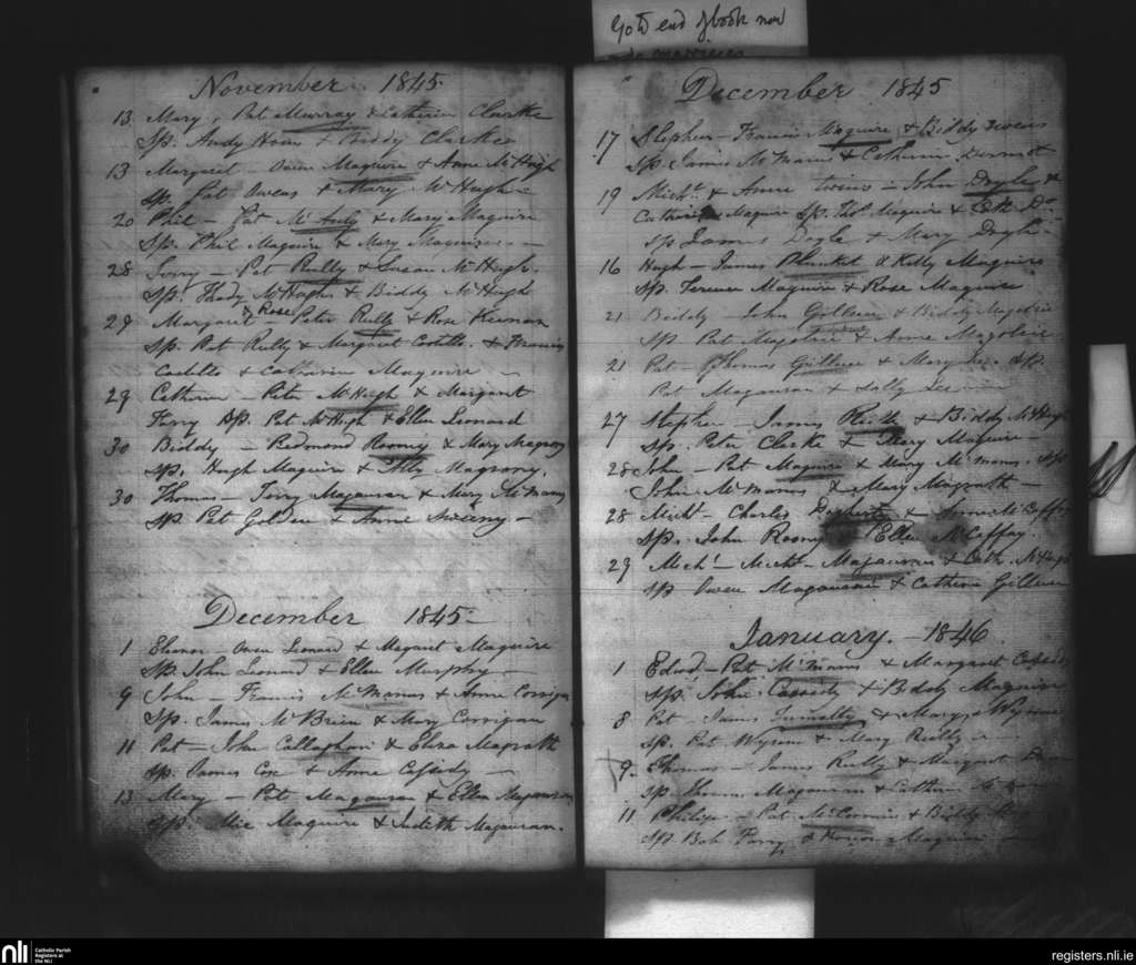 Kinnally; County of Fermanagh, Cavan; Diocese of Kilmore. Baptisms, Nov. 1845 to Jan. 1846