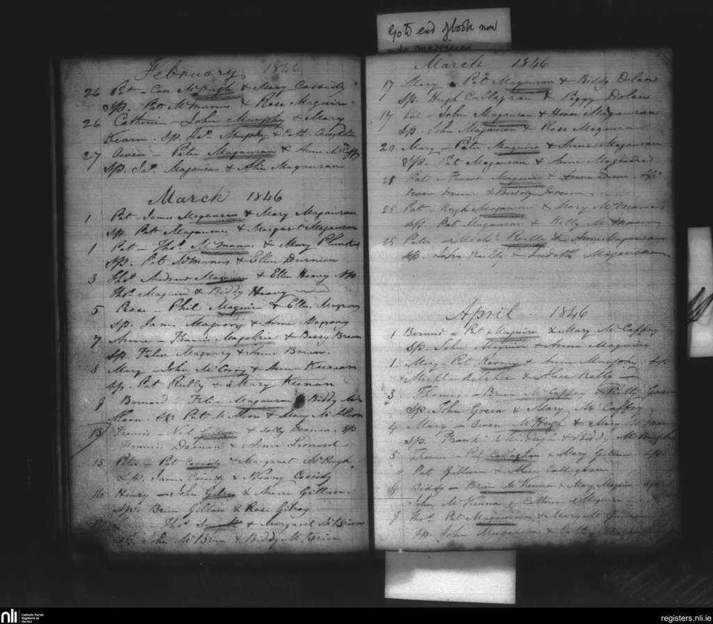 Kinnally; County of Fermanagh, Cavan; Diocese of Kilmore. Baptisms, Feb. 1846 to Apr. 1846