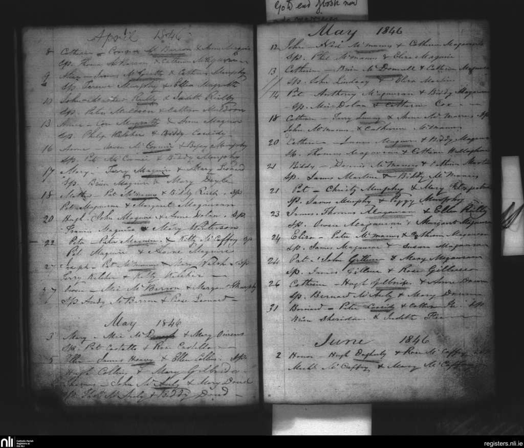 Kinnally; County of Fermanagh, Cavan; Diocese of Kilmore. Baptisms, Apr. 1846 to June 1846