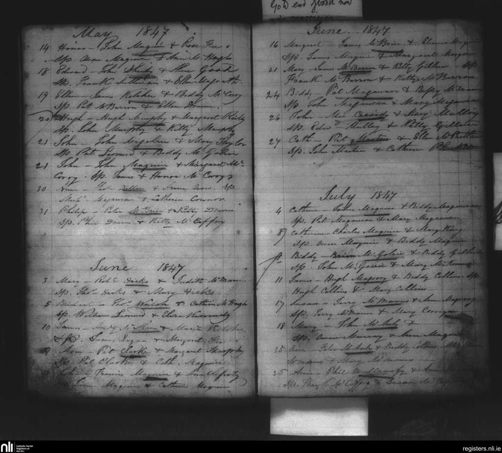 Kinnally; County of Fermanagh, Cavan; Diocese of Kilmore. Baptisms, May 1847 to July 1847
