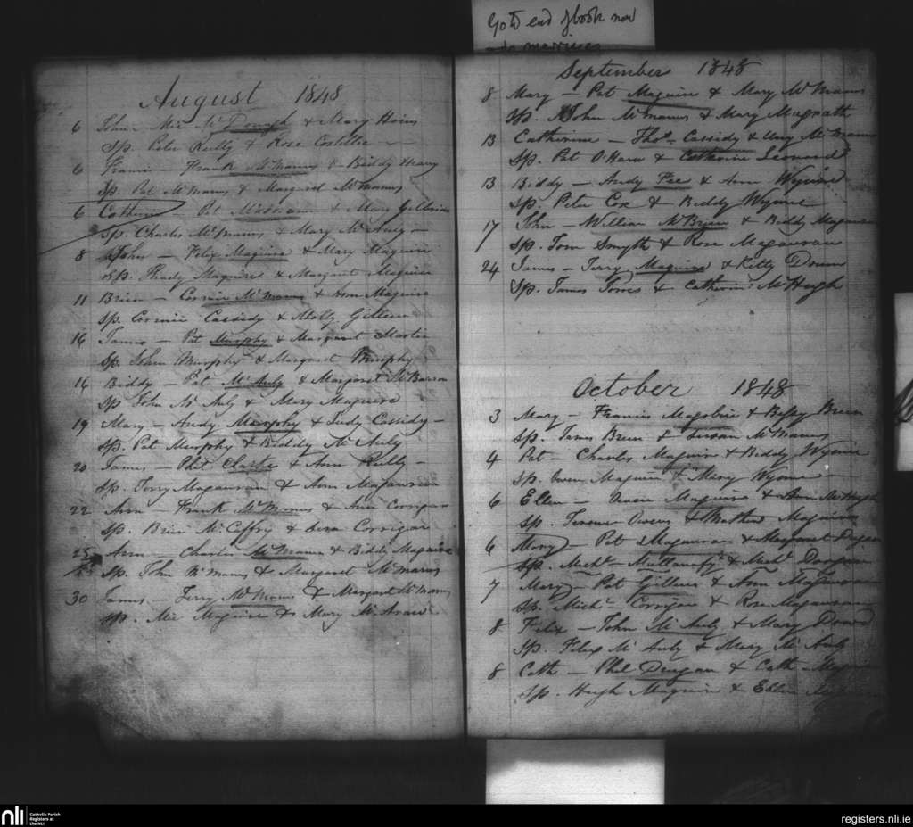Kinnally; County of Fermanagh, Cavan; Diocese of Kilmore. Baptisms, Aug. 1848 to Oct. 1848