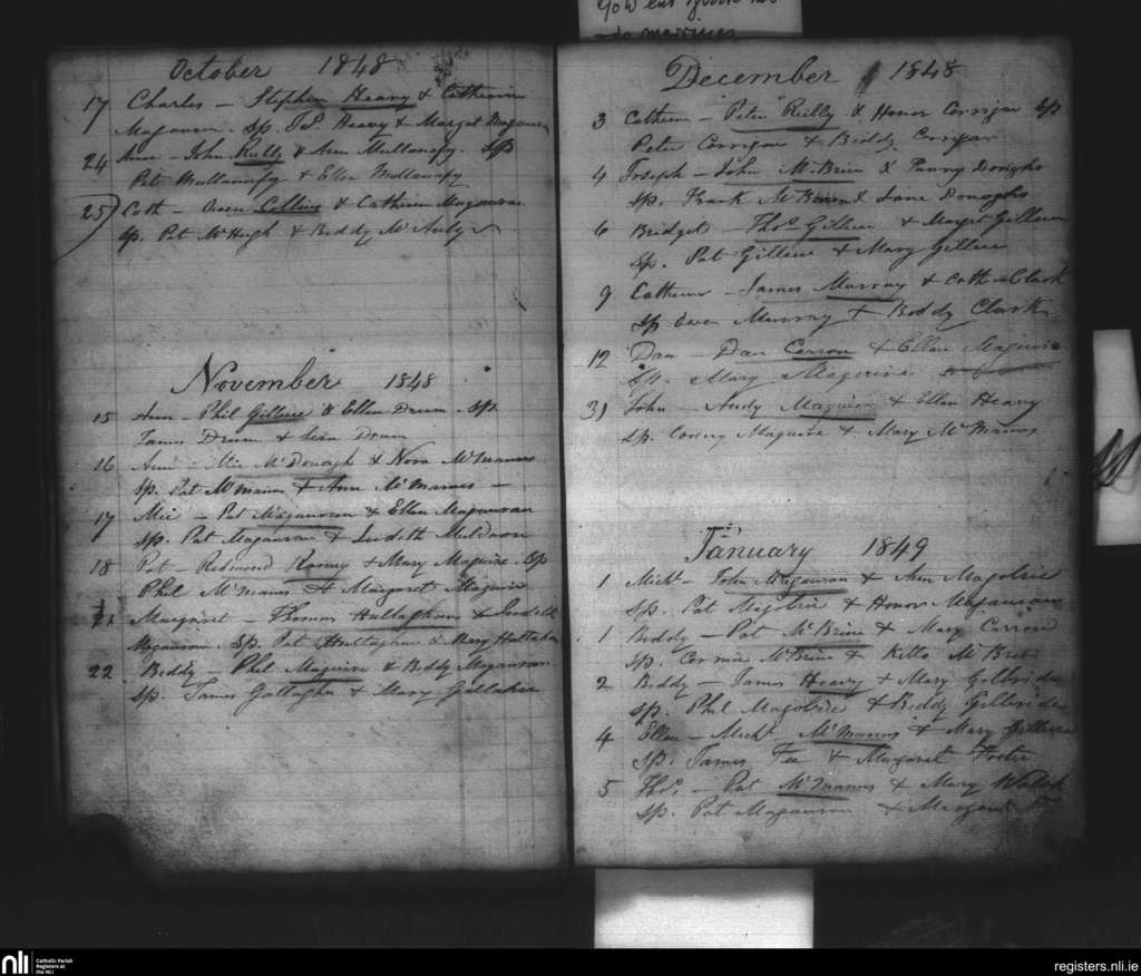 Kinnally; County of Fermanagh, Cavan; Diocese of Kilmore. Baptisms, Oct. 1848 to Jan. 1849
