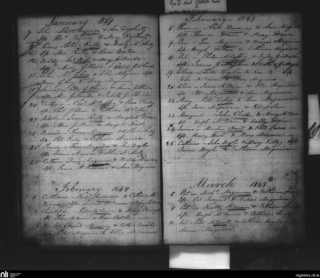 Kinnally; County of Fermanagh, Cavan; Diocese of Kilmore. Baptisms, Jan. 1849 to Mar. 1849