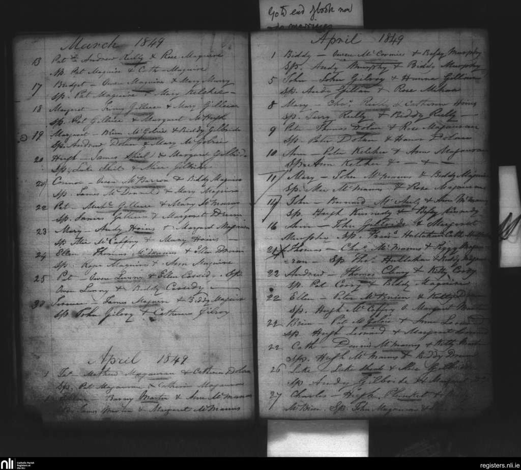 Kinnally; County of Fermanagh, Cavan; Diocese of Kilmore. Baptisms, Mar. 1849 to Apr. 1849