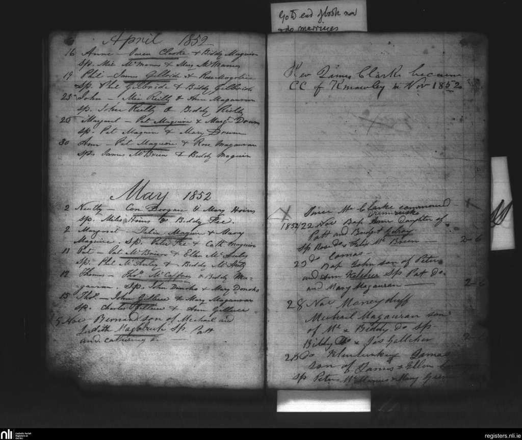 Kinnally; County of Fermanagh, Cavan; Diocese of Kilmore. Baptisms, Apr. 1852 to Nov. 1852
