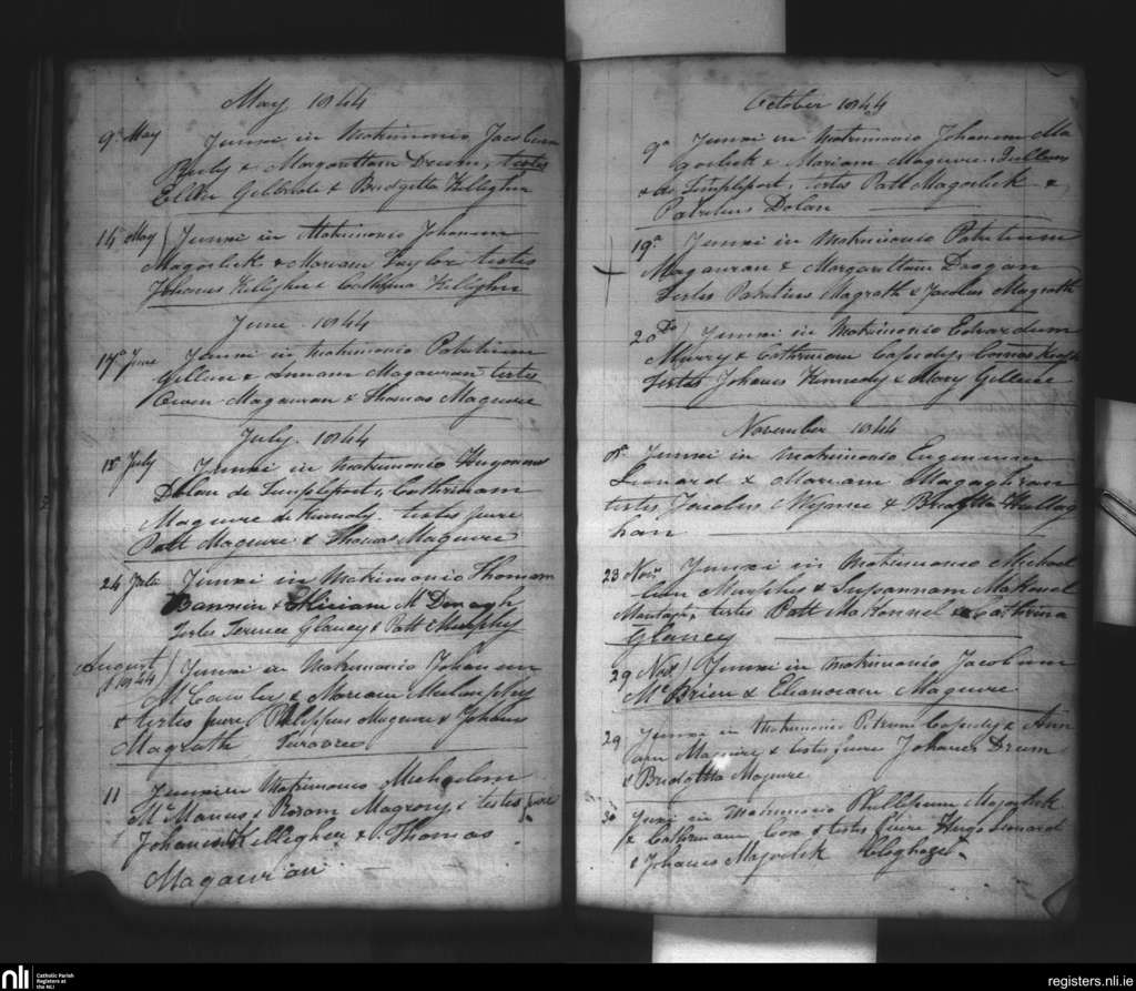 Kinnally; County of Fermanagh, Cavan; Diocese of Kilmore. Marriages, May 1844 to Nov. 1844