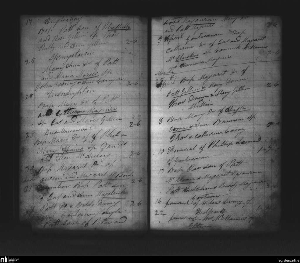 Kinnally; County of Fermanagh, Cavan; Diocese of Kilmore. Baptisms, Marriages, Funerals, Mar. 1854 to Apr. 1854