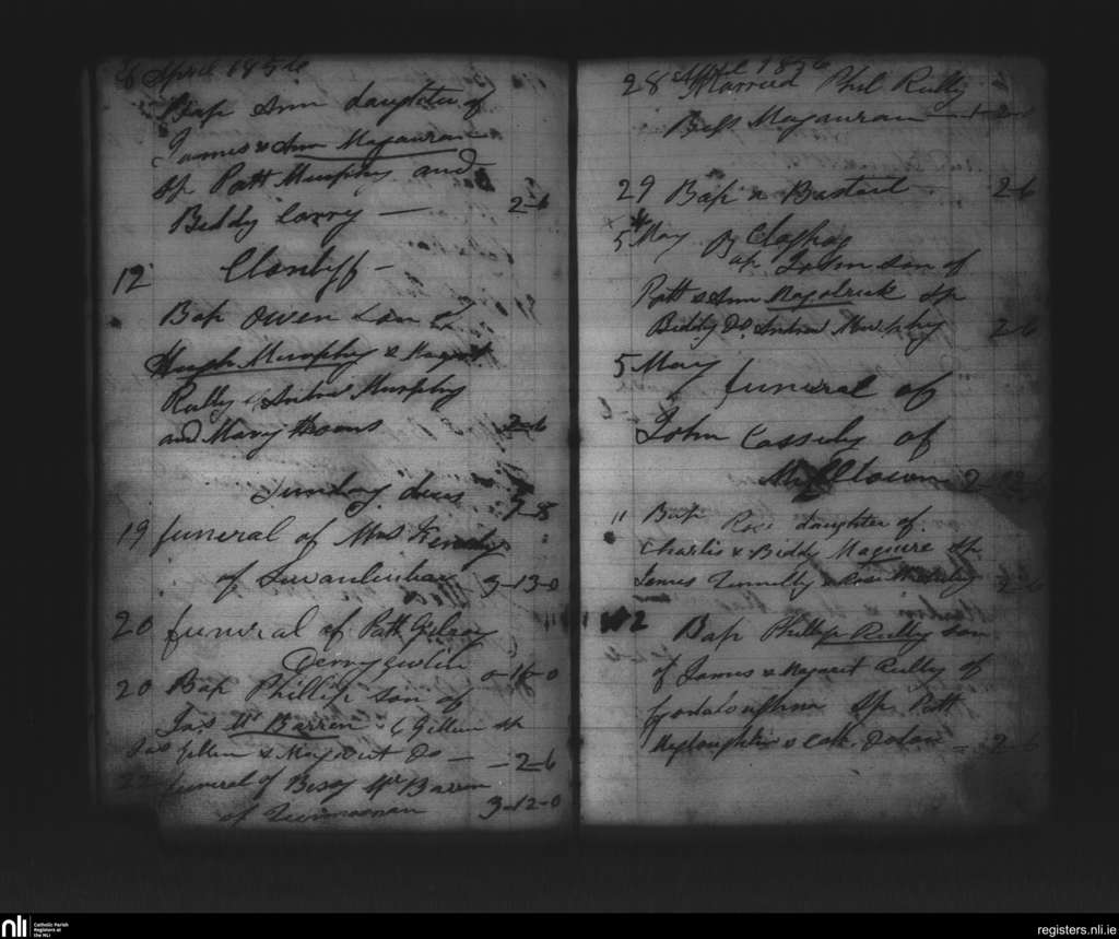 Kinnally; County of Fermanagh, Cavan; Diocese of Kilmore. Baptisms, Marriages, Funerals, Apr. 1856 to May 1856