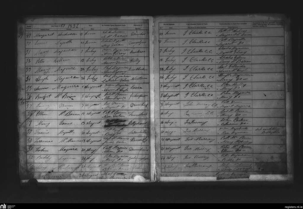 Kinnally; County of Cavan, Fermanagh; Diocese of Kilmore. Baptisms, June 1857 to Aug. 1857