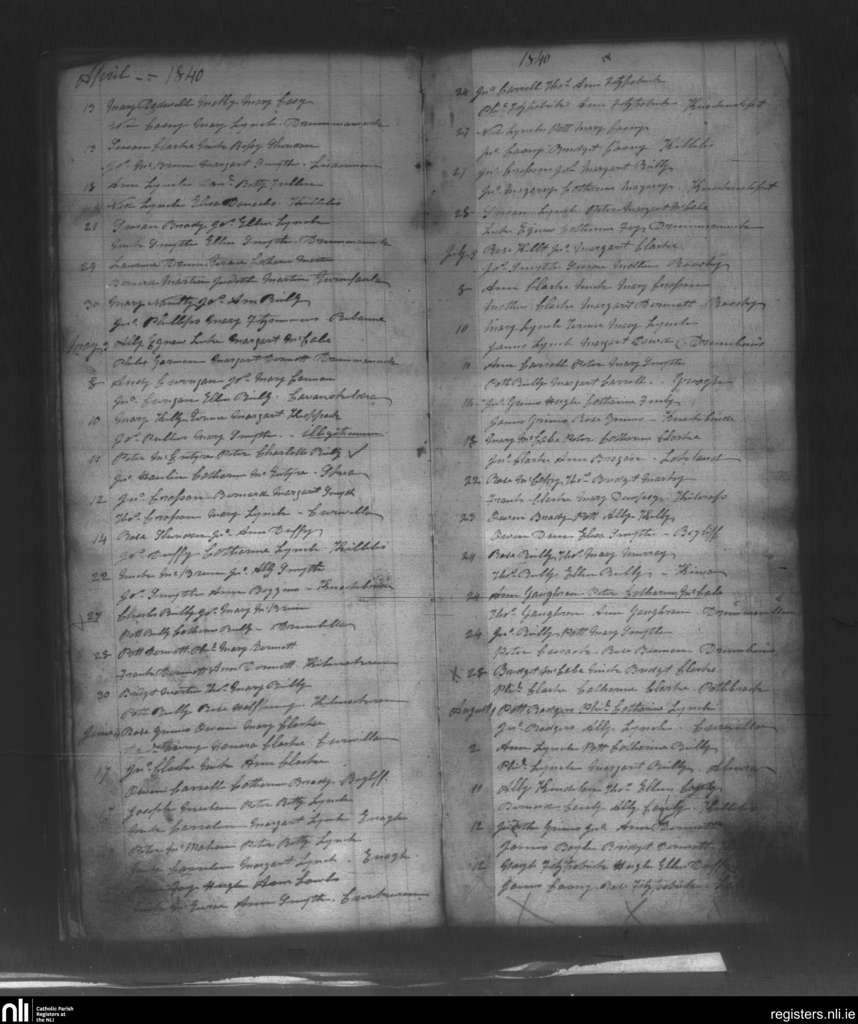 Knockbride; County of Cavan; Diocese of Kilmore. Baptisms, Apr. 1840 to Aug. 1840